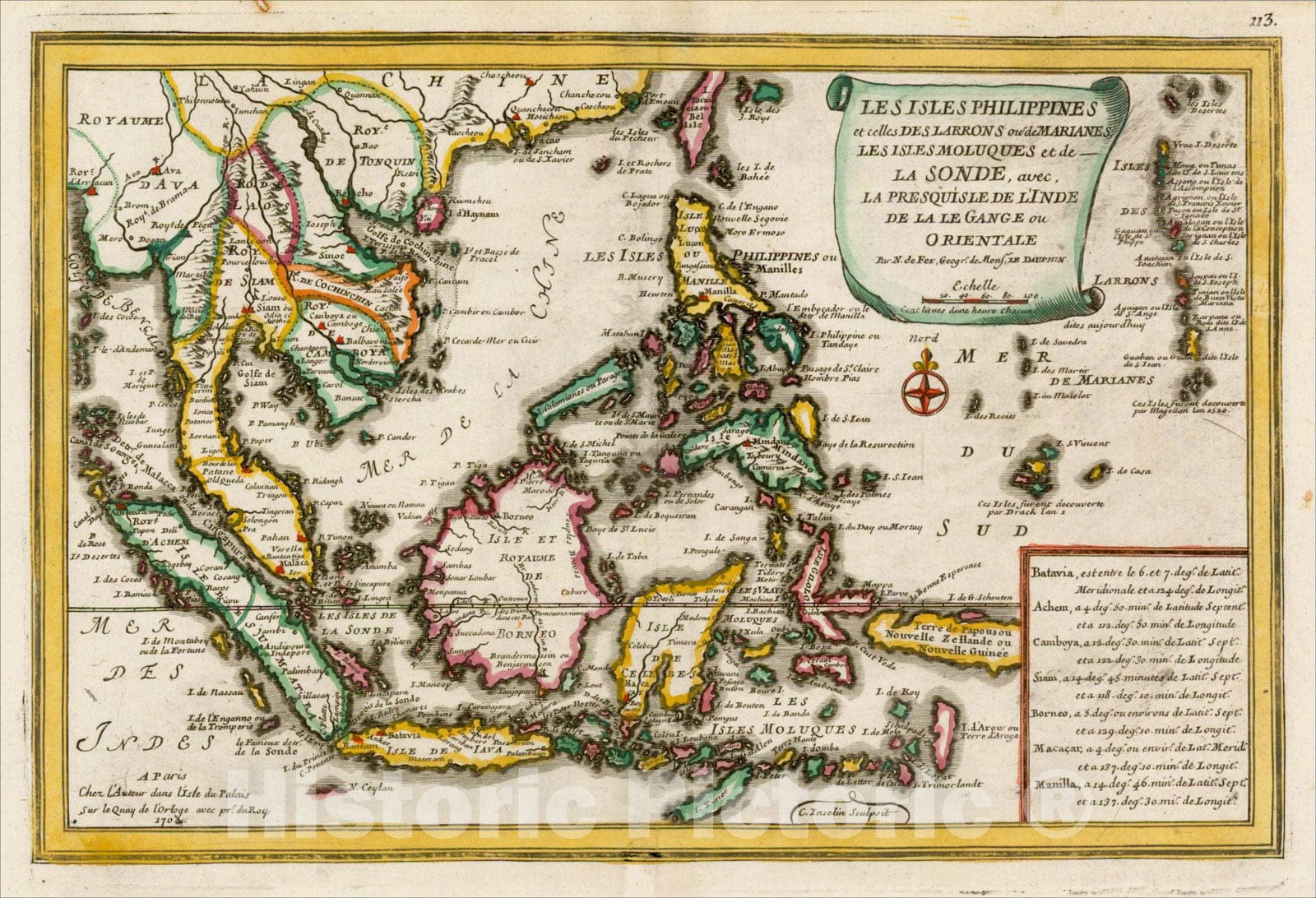 Historic Map : Les Isles Philippines et celles Des Larrons ou de Marianes Les Isles Moluquest et de La Sonde, 1705, Nicolas de Fer, Vintage Wall Art