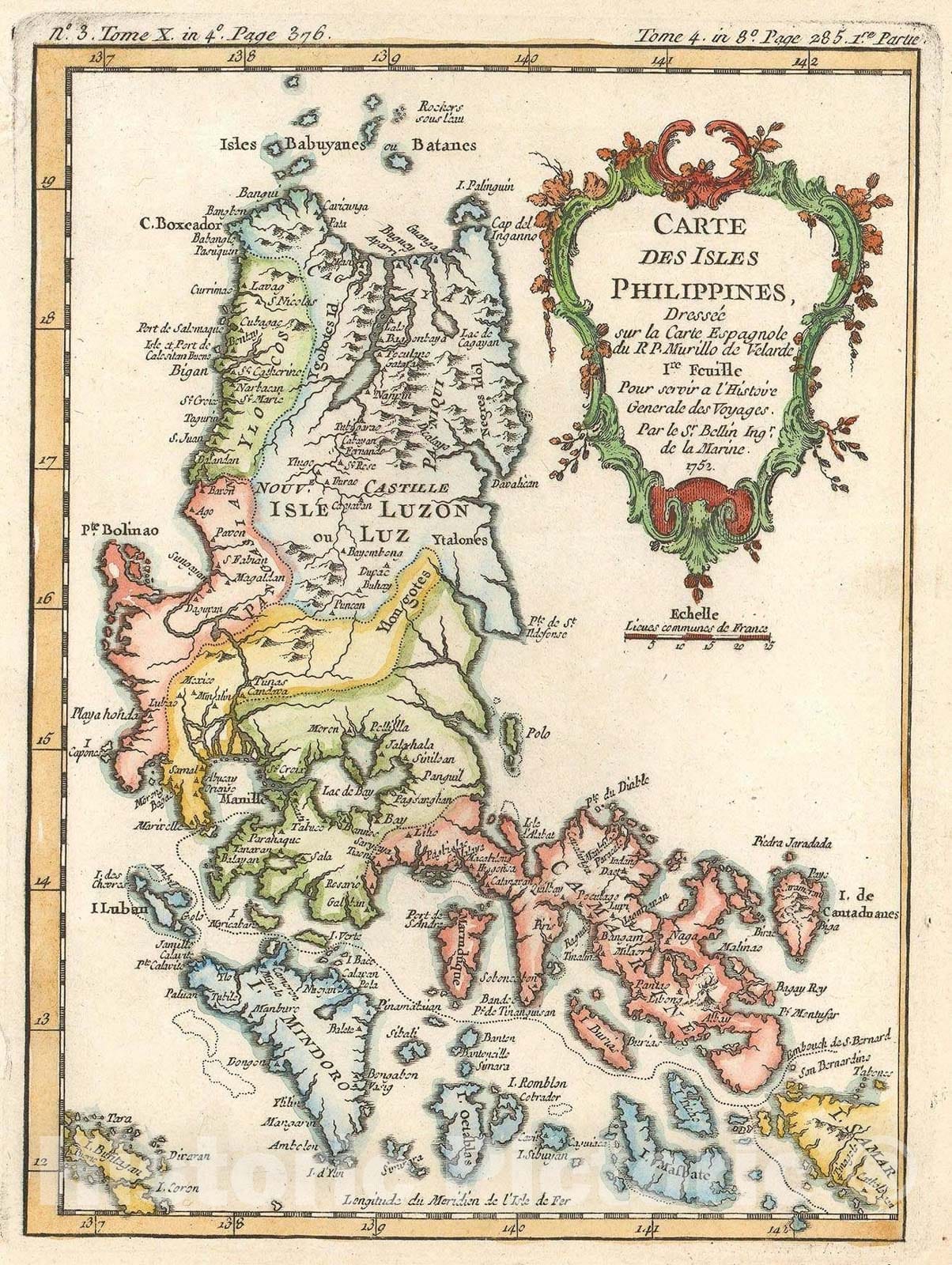 Historic Map : The Northern Philippines "Luzon, Mindoro, Samar", Bellin, 1752, Vintage Wall Art