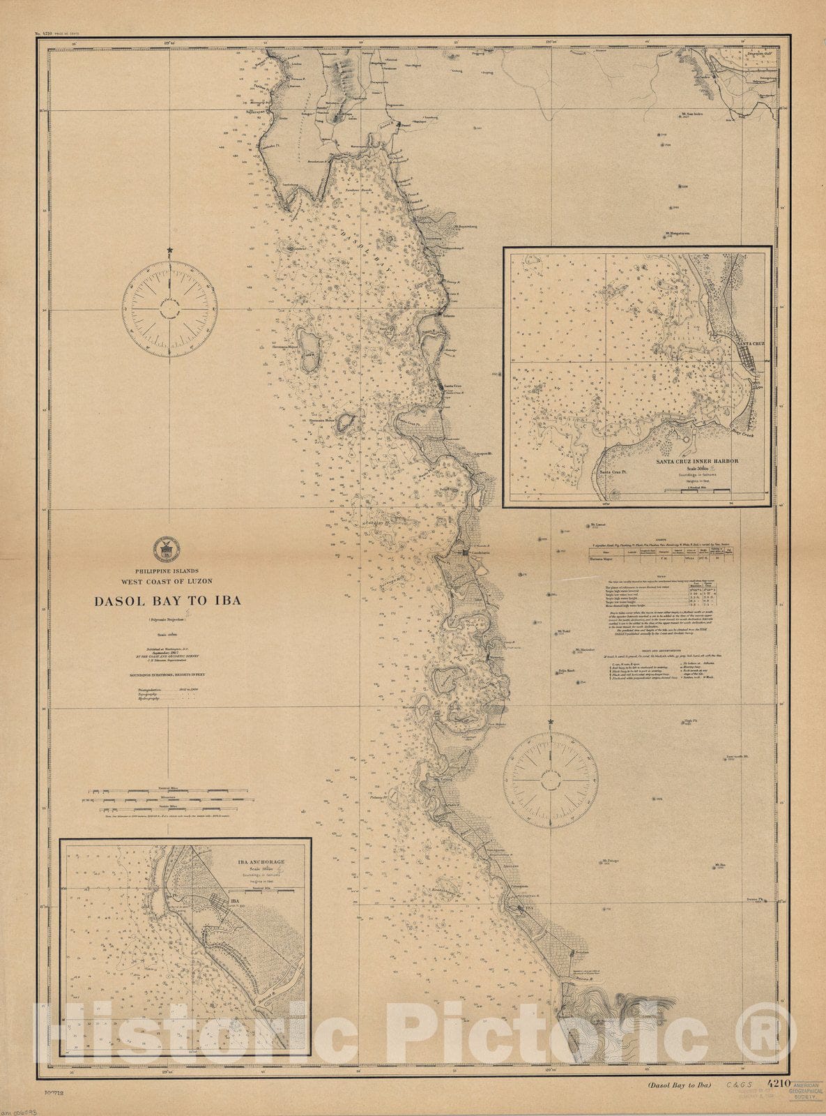 Map : Luzon, Philippines 1907, Philippine Islands, west coast of Luzon : Dasol Bay to Iba , Antique Vintage Reproduction
