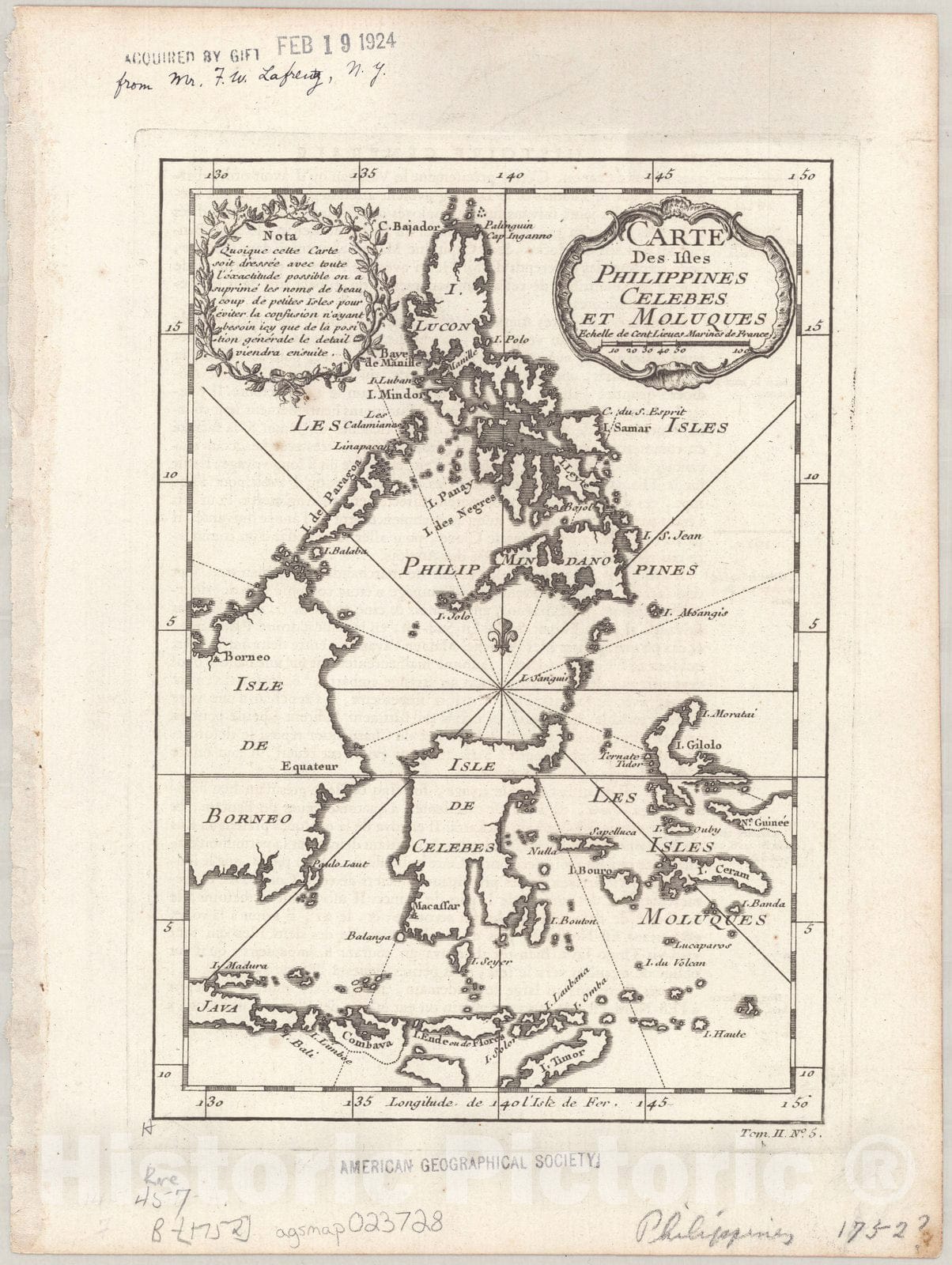 Map : Philippines 1752, Carte des Isles Philippines, Celebes et Moluques, Antique Vintage Reproduction