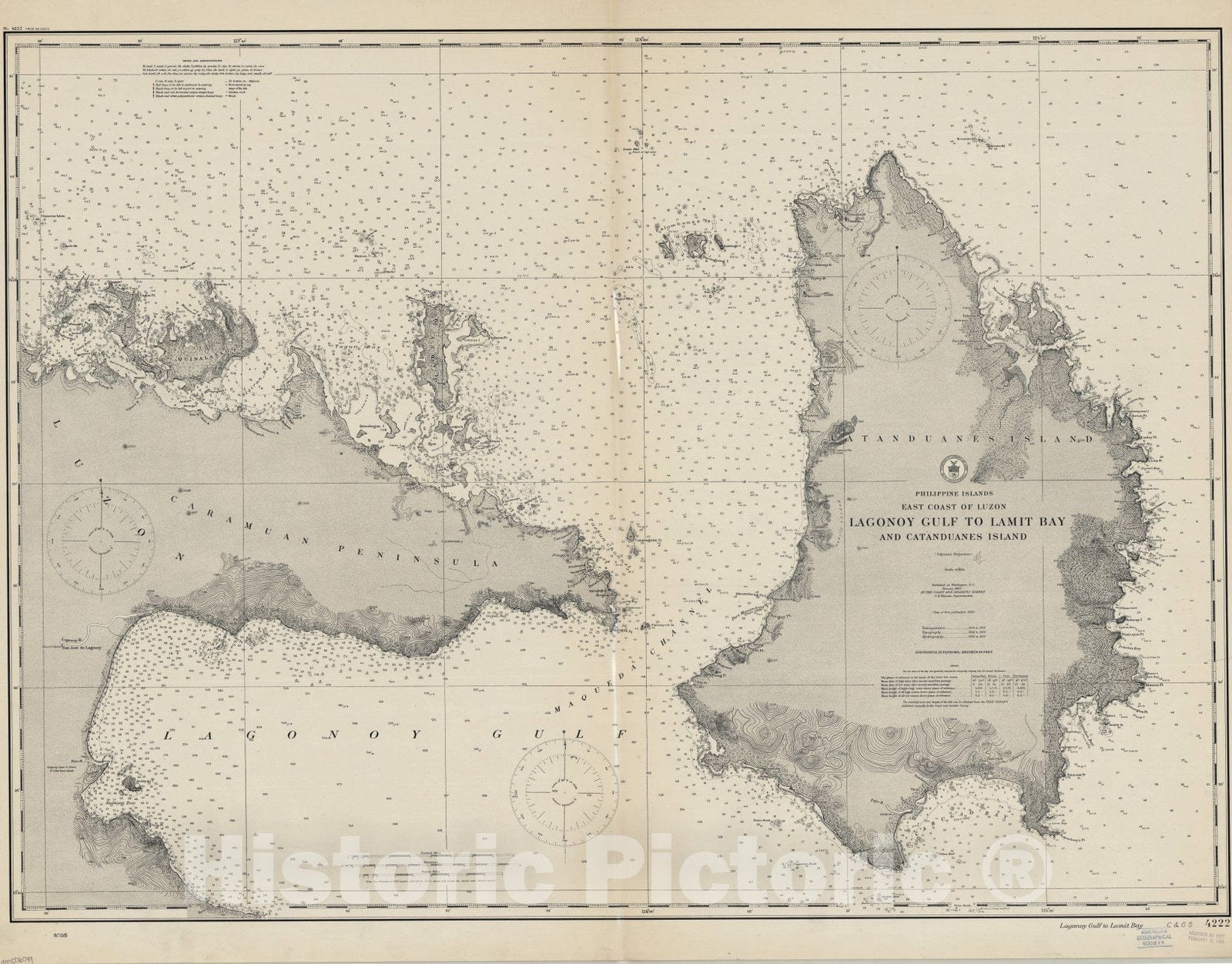 Map : Philippines 1909, Philippine Islands, east coast of Luzon : Lagonoy Gulf to Lamit Bay and Catanduanes Island , Antique Vintage Reproduction
