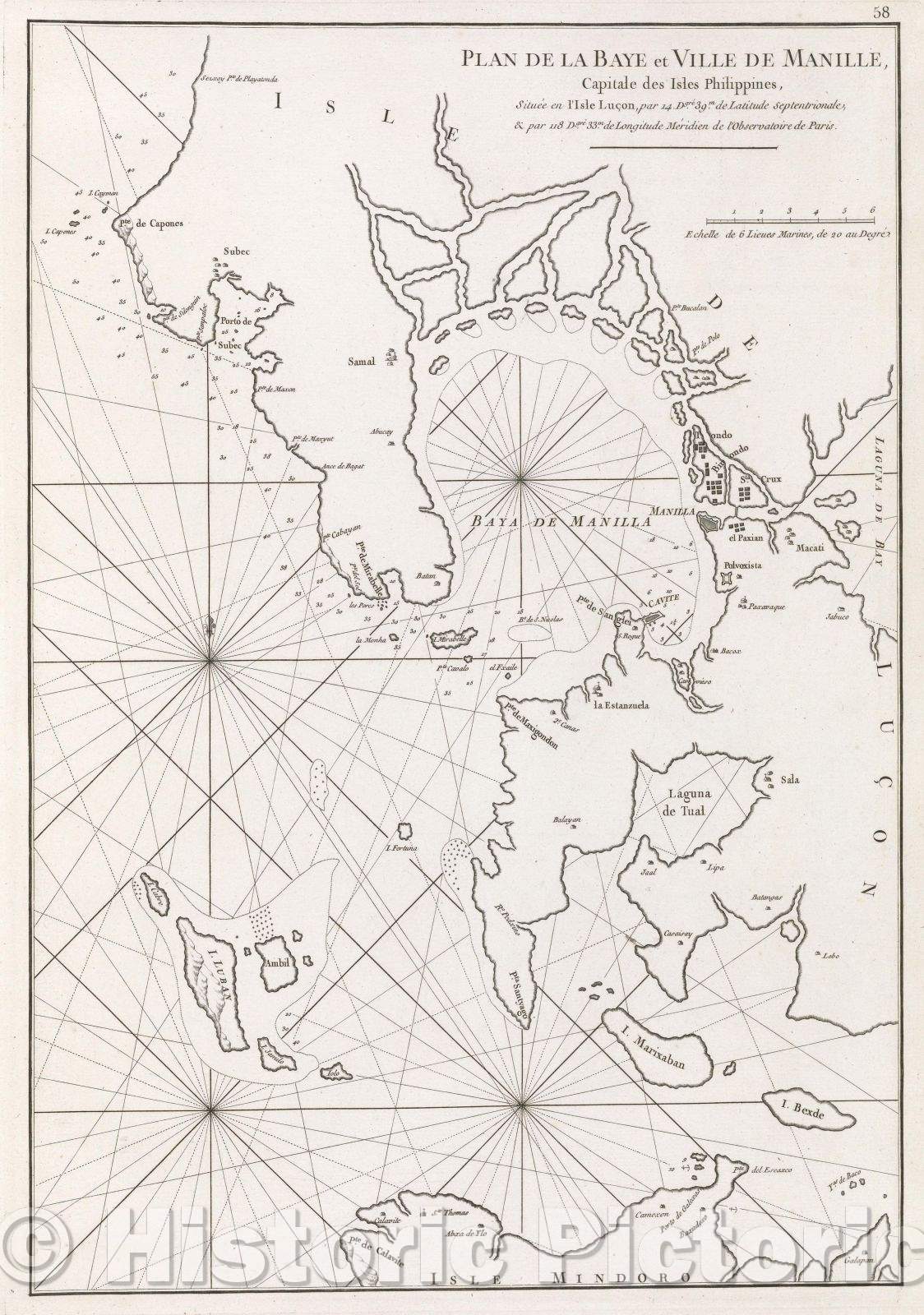 Historic Map : Plan de la Baye et Ville de Manille, Capitale des Isles Philippines, situee en l'Isle Lucon..., 1775 , Vintage Wall Art