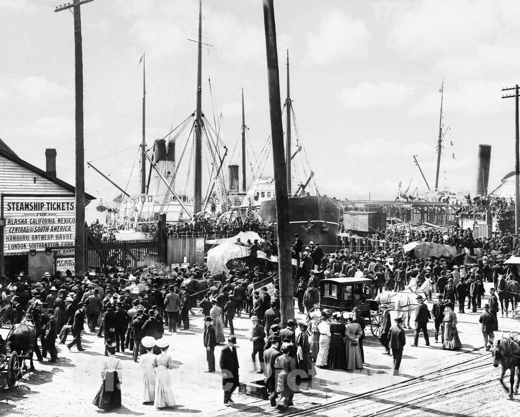 Historic Black & White Photo - Seattle, Washington - Crowds at the Steamship Docks, c1898 -