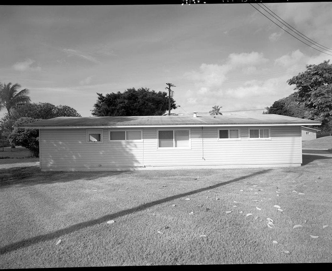 EAST SIDE OF UNIT A. VIEW FACES SOUTHEAST - Camp H.M. Smith and Navy Public Works Center Manana Title VII (Capehart) Housing, M-Shaped Four-Bedroom Duplex Type 5, Birch Circle, Cedar Drive, Pearl City, Honolulu County, HI