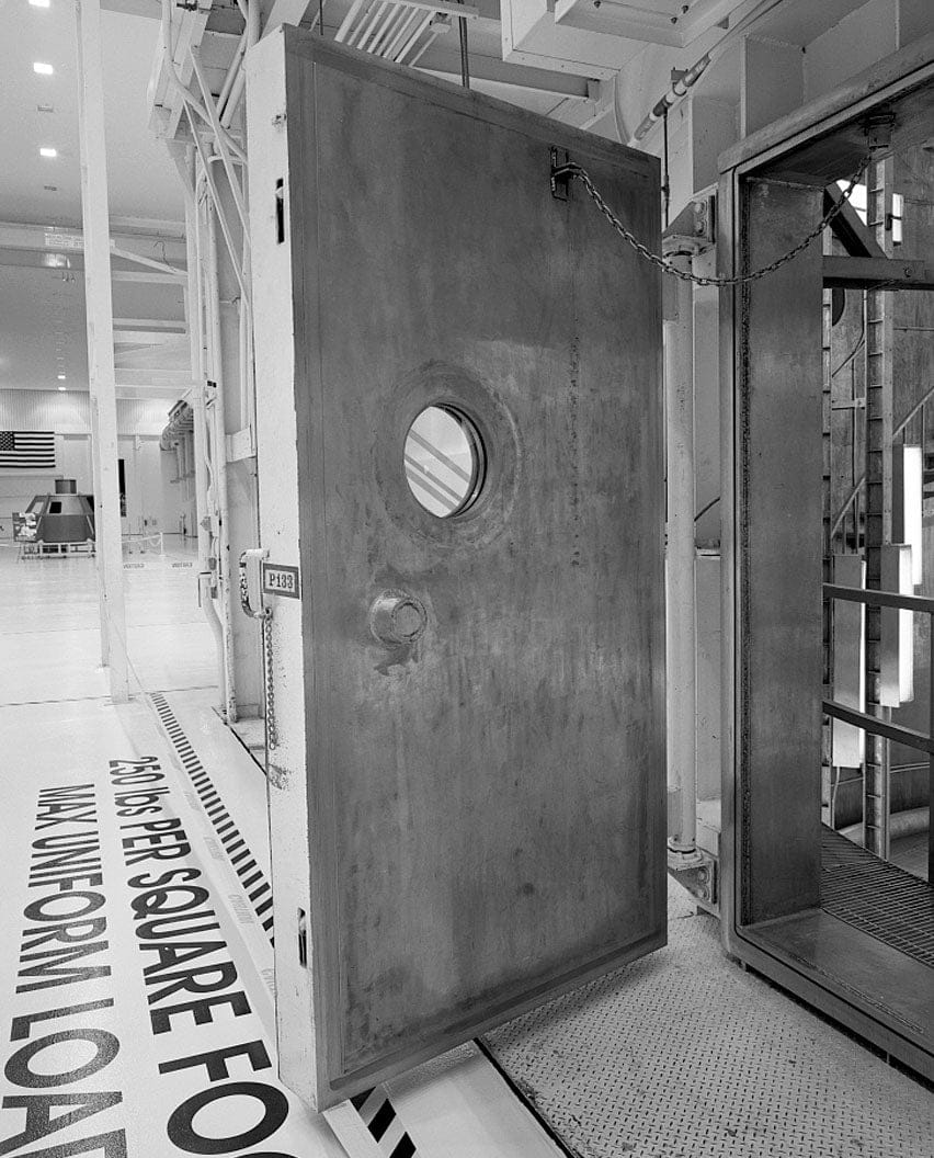 DETAIL OF P133R (ACCESS DOOR) AT 0’-0” LEVEL, ALTITUDE CHAMBER R, FACING NORTHWEST - Cape Canaveral Air Force Station, Launch Complex 39, Altitude Chambers, First Street, between Avenue D and Avenue E, Cape Canaveral, Brevard County, FL