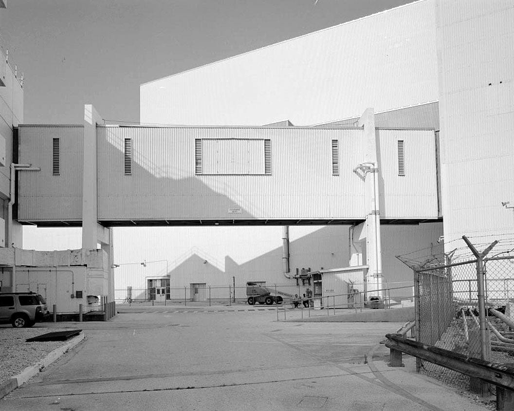DETAIL VIEW OF ACCESS BRIDGE TO VEHICLE ASSEMBLY BUILDING, WEST ELEVATION, FACING SOUTHWEST - Cape Canaveral Air Force Station, Launch Complex 39, Launch Control Center, LCC Road, East of Kennedy Parkway North, Cape Canaveral, Brevard County, FL
