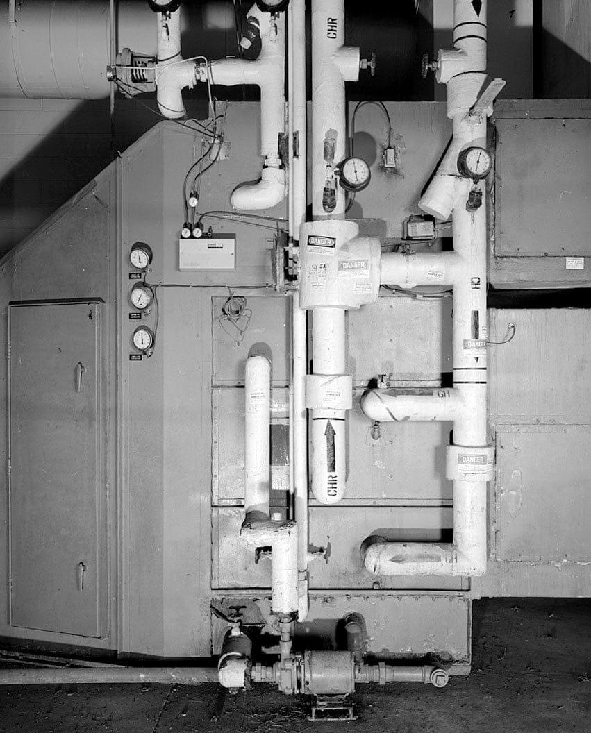 DETAIL OF HEATING/COOLING SYSTEM, A/C MECHANICAL EQUIPMENT ROOM, FACING NORTHEAST - Cape Canaveral Air Force Station, Launch Complex 34, Operations Support Building, Freedom Road, Southwest of Launch Stand CX-34, Cape Canaveral, Brevard County, FL