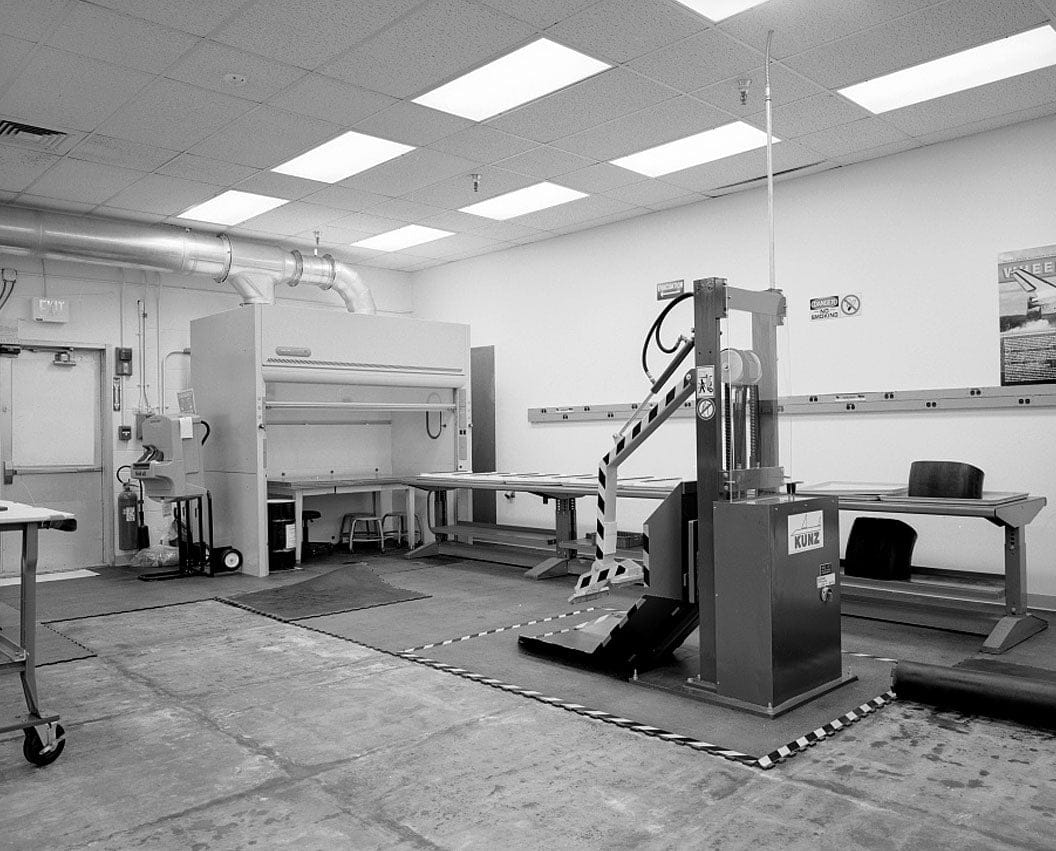 DETAIL VIEW OF VENT HOOD (LEFT) AND WHEEL LIFT (RIGHT), ROOM 1M10, FACING SOUTHEAST - Cape Canaveral Air Force Station, Launch Complex 39, Vehicle Assembly Building, VAB Road, East of Kennedy Parkway North, Cape Canaveral, Brevard County, FL