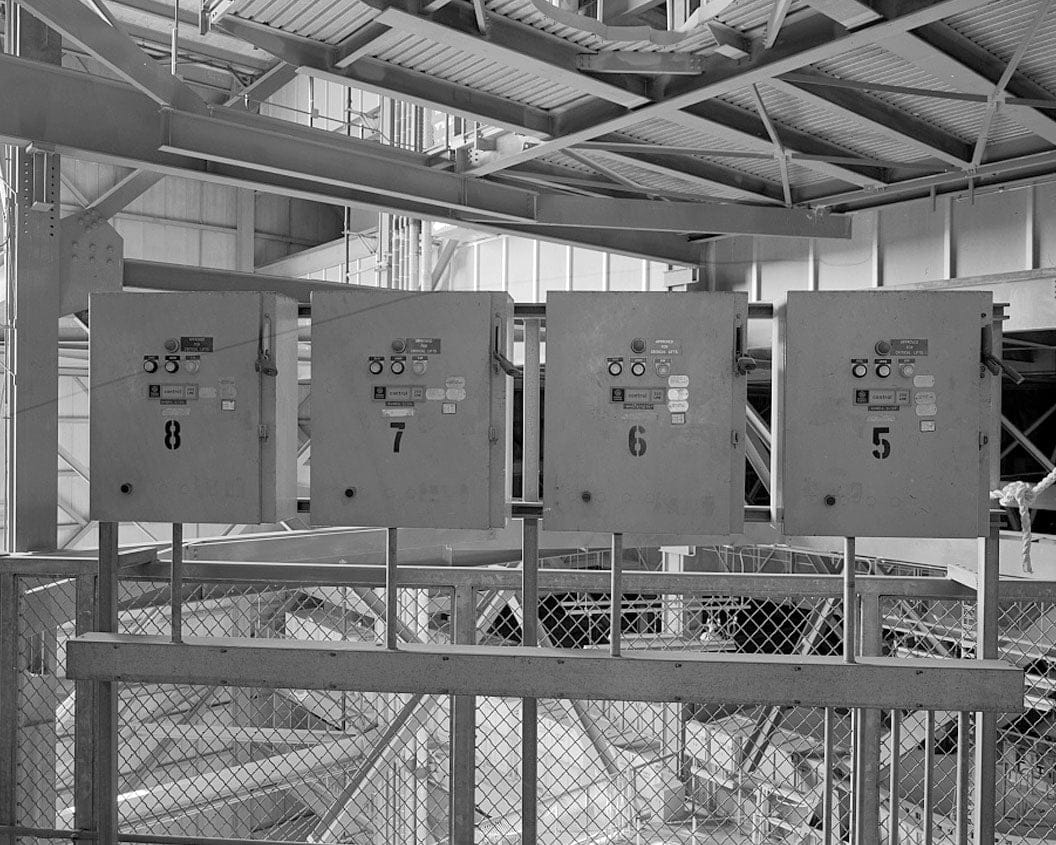DETAIL OF THE CONTROLS FOR ONE-HALF OF THE MOVEABLE PLATFORMS, EIGHTH LEVEL OF THE EXTERNAL TANK CHECK-OUT CELLS, HB-2, FACING NORTHWEST - Cape Canaveral Air Force Station, Launch Complex 39, Vehicle Assembly Building, VAB Road, East of Kennedy Parkway North, Cape Canaveral, Brevard County, FL