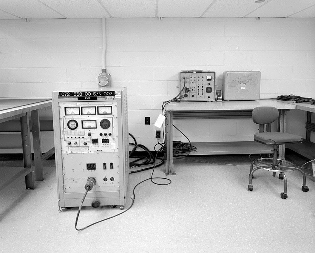 DETAIL VIEW OF ELECTRONICS TEST AREA, FLIGHT KITS FACILITY, ROOM NO. 1N12, FACING WEST - Cape Canaveral Air Force Station, Launch Complex 39, Vehicle Assembly Building, VAB Road, East of Kennedy Parkway North, Cape Canaveral, Brevard County, FL