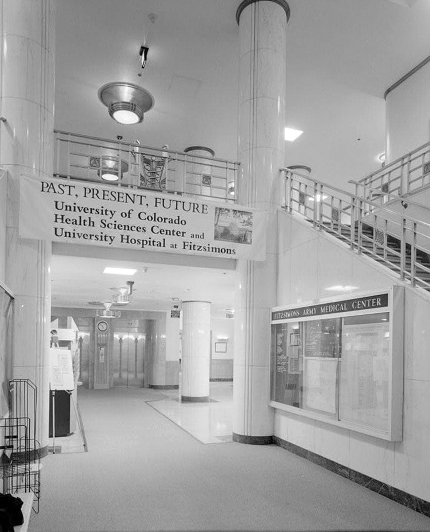 Lobby from main entrance (ground floor) - Fitzsimons General Hospital, Main Hospital Building, Charlie Kelly Boulevard, North side, at intersection of Sharon A. Lane Drive, Aurora, Adams County, CO
