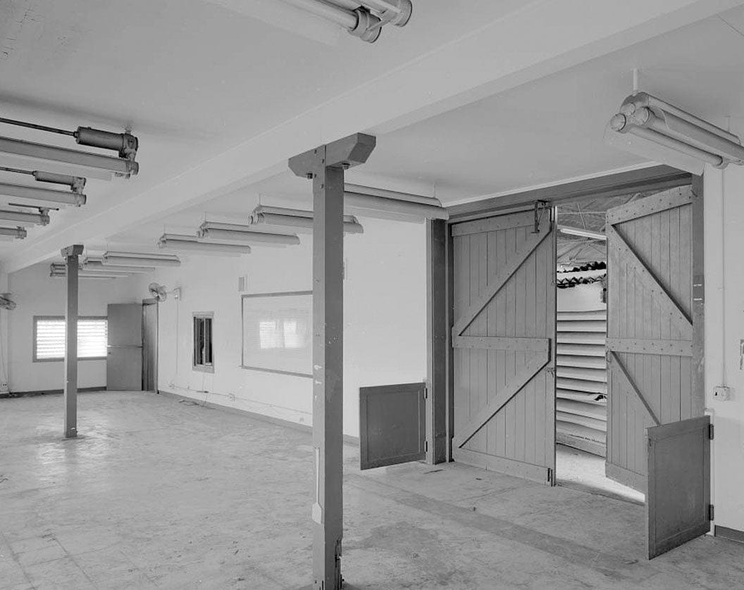 INTERIOR VIEW OF THE FORMER TOOL ROOM AT THE WEST END - Hickam Field, Practice Bomb Loading Shed, Bomb Storage Road near the intersection of Moffet and Kamakahi Streets, Honolulu, Honolulu County, HI