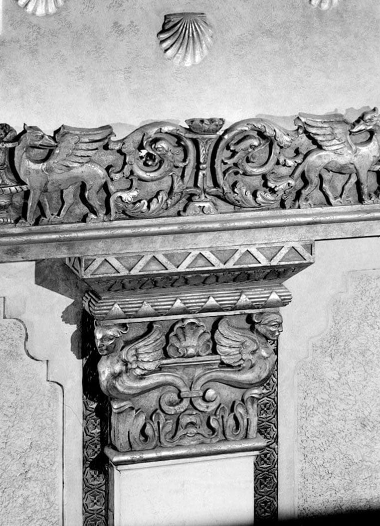 58. DETAIL VIEW OF FRIEZE AND TYPICAL PILASTER CAPITOL - Alabama Theatre, 1811 Third Avenue North, Birmingham, Jefferson County, AL