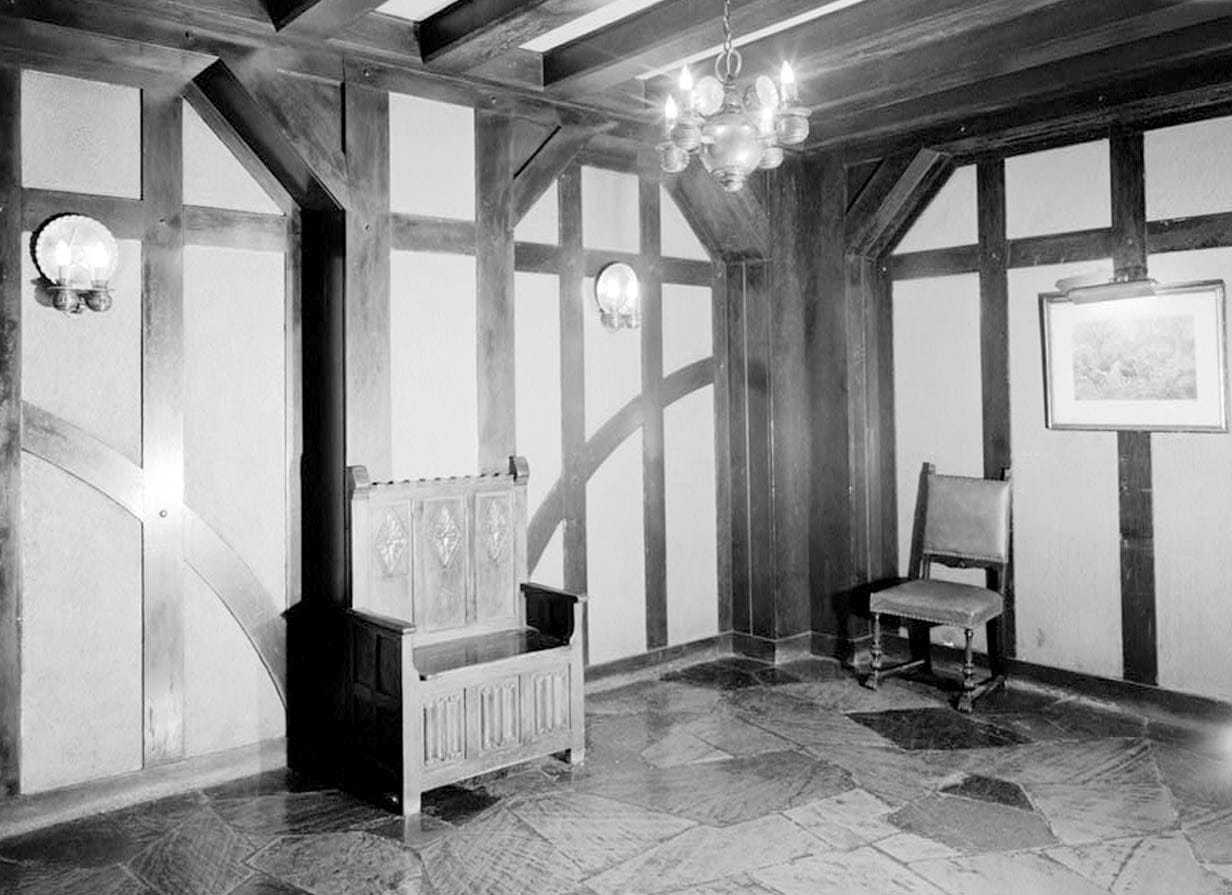 68. VIEW OF THE SOUTH END OF THE GENTLEMEN'S LOUNGE WITH AN ENGLISH HUNT THEME, ON THE BASEMENT LEVEL, LOOKING FROM THE NORTH - Alabama Theatre, 1811 Third Avenue North, Birmingham, Jefferson County, AL