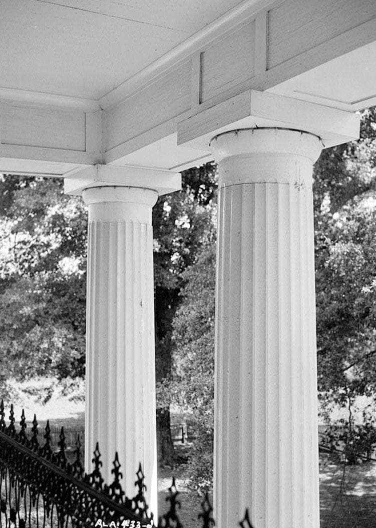 5. Historic American Buildings Survey E. W. Russell, Photographer, June 18, 1937 TWO OF THE COLUMNS OF FRONT PORTICO FROM SECOND STORY BALCONY - Alpine, County Road 46, Alpine, Talladega County, AL