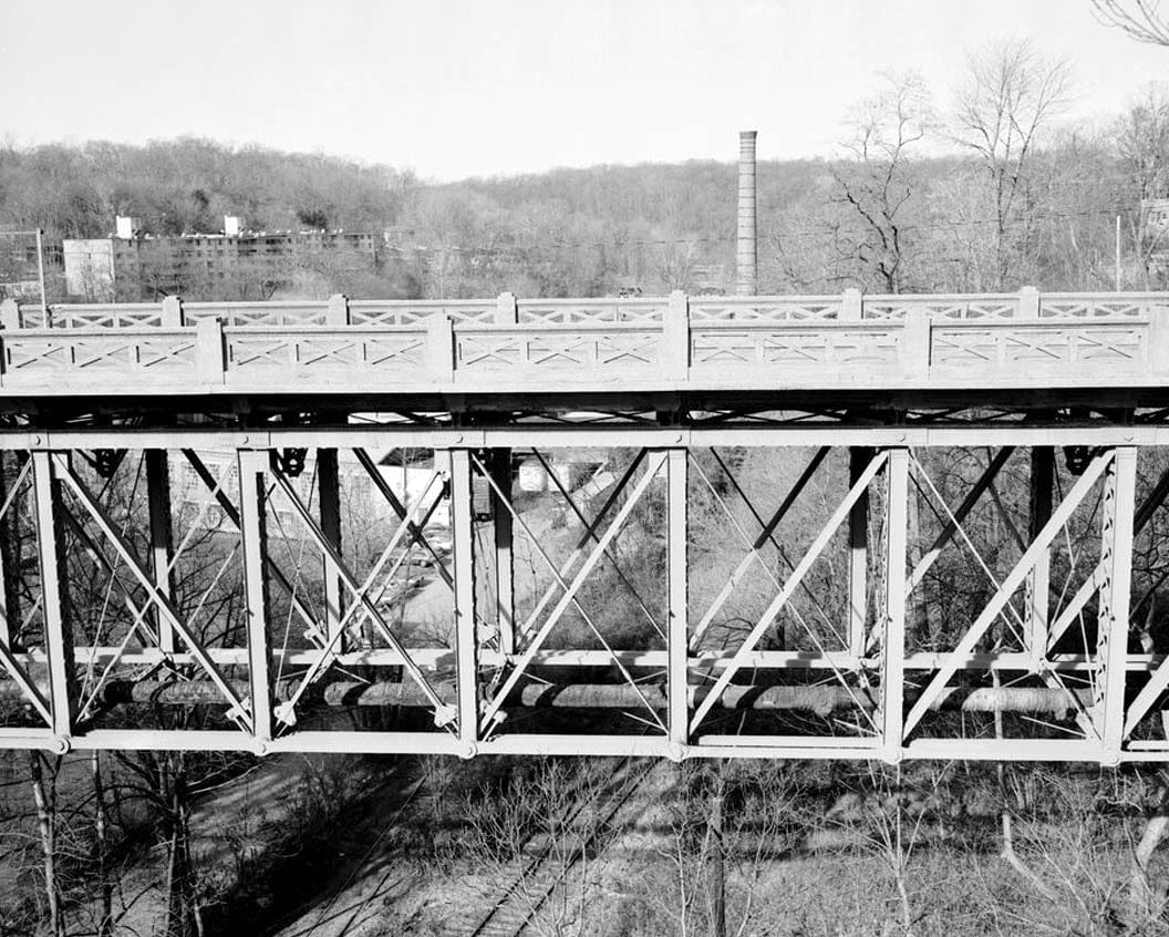 14. View north from the adjacent B & O railroad bridge of portion of main truss span between Pier No. 4. and Pier No. 5. - Augustine Bridge, Brandywine River,Augustine Cutoff, Wilmington, New Castle County, DE
