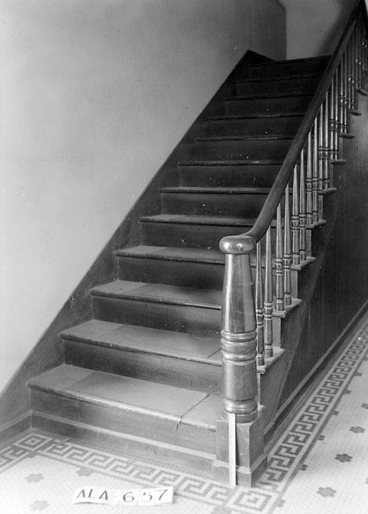 3. Historic American Buildings Survey W. N. Manning, Photographer, March 15, 1935 SHOWING BASE OF STAIRWAY ON N.W. SIDE - Baptist Church, 205 West Bridge Street, Wetumpka, Elmore County, AL