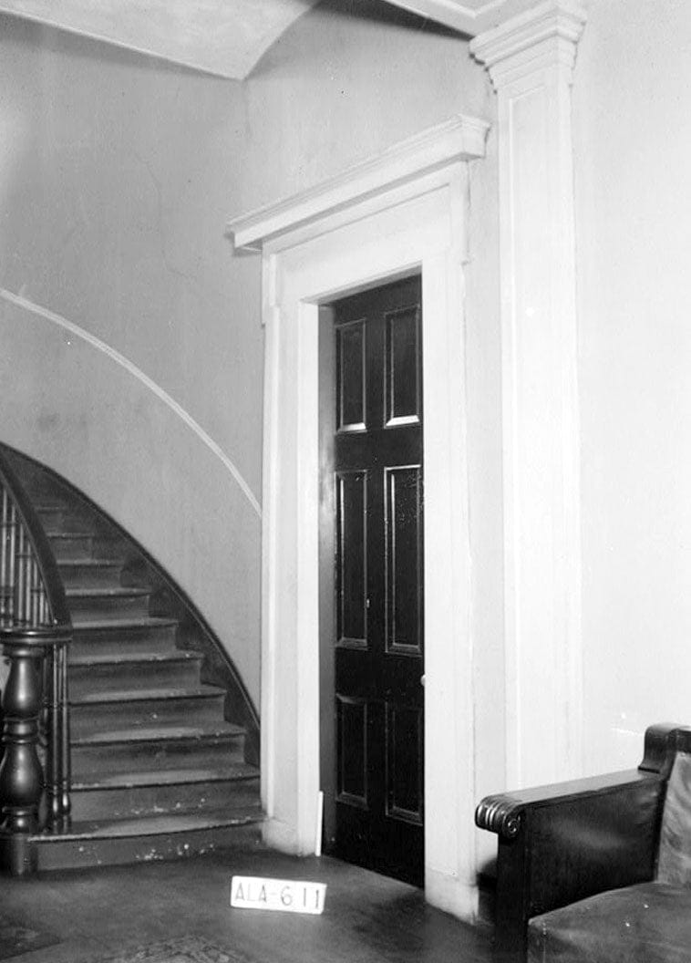 5. Historic American Buildings Survey W. N. Manning, Photographer, October 23, 1935 DOOR TREATMENT AT BASE OF STAIR IN HALL - Bibb-Goldthwaithe-Arrington House, 203 Church Street, Montgomery, Montgomery County, AL