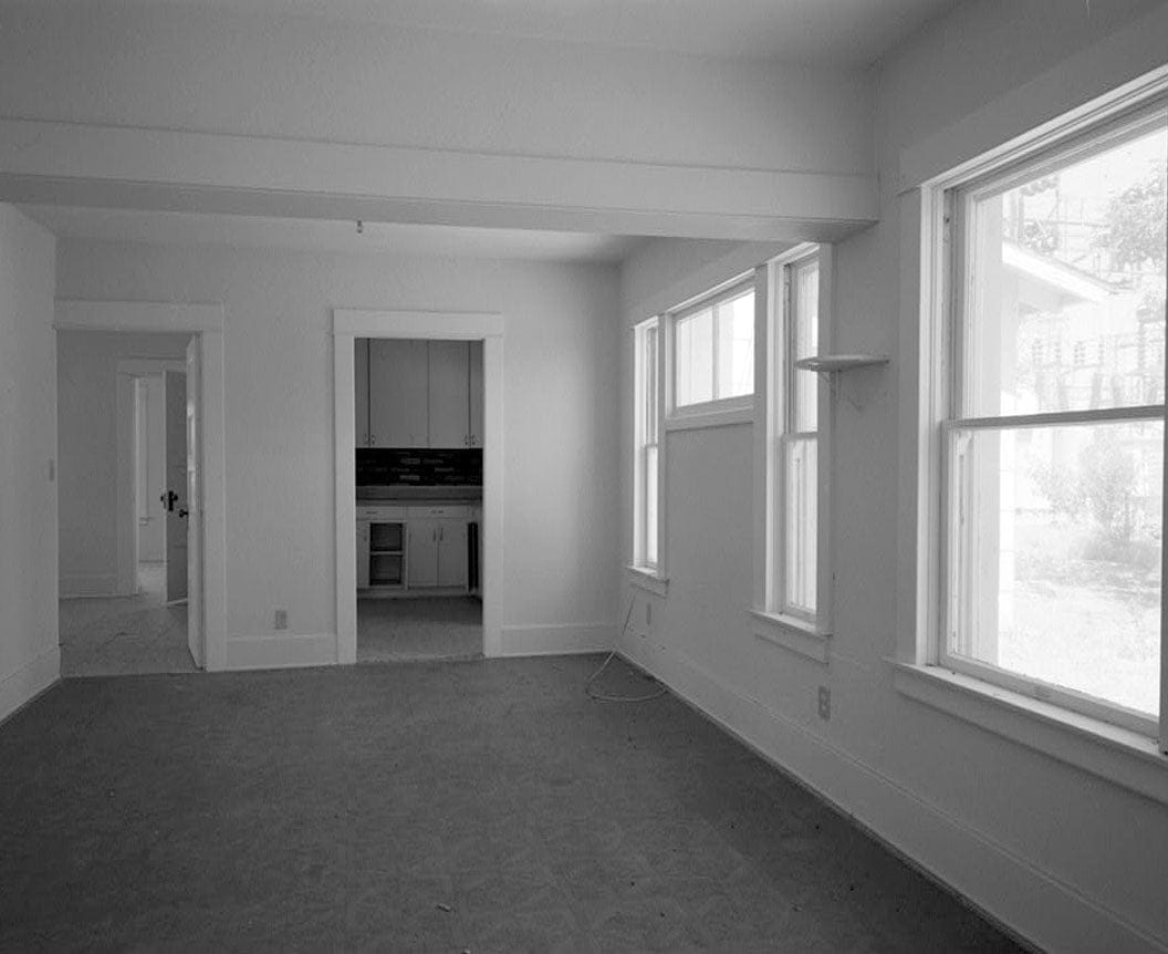 9. INTERIOR OF LIVING/DINING ROOM. VIEW TO WEST. - Bishop Creek Hydroelectric System, Control Station, Operations Building No. 1, Bishop Creek, Bishop, Inyo County, CA