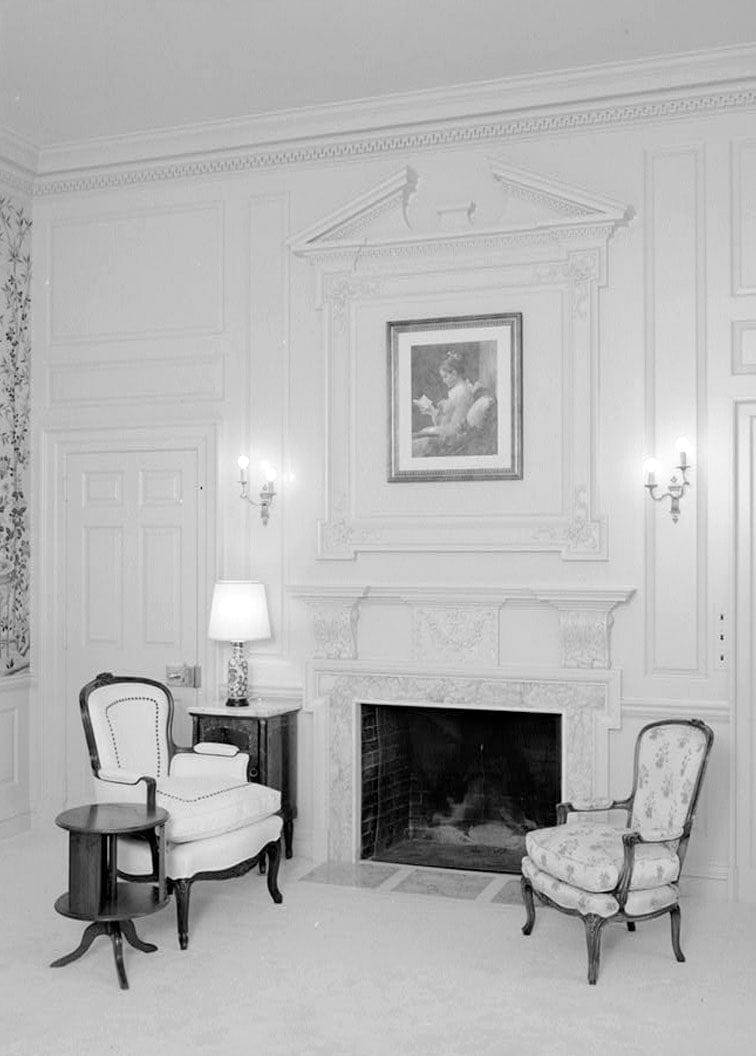 15. SECOND-FLOOR BEDROOM, FIREPLACE WALL - Clark House, Hillsborough, San Mateo County, CA