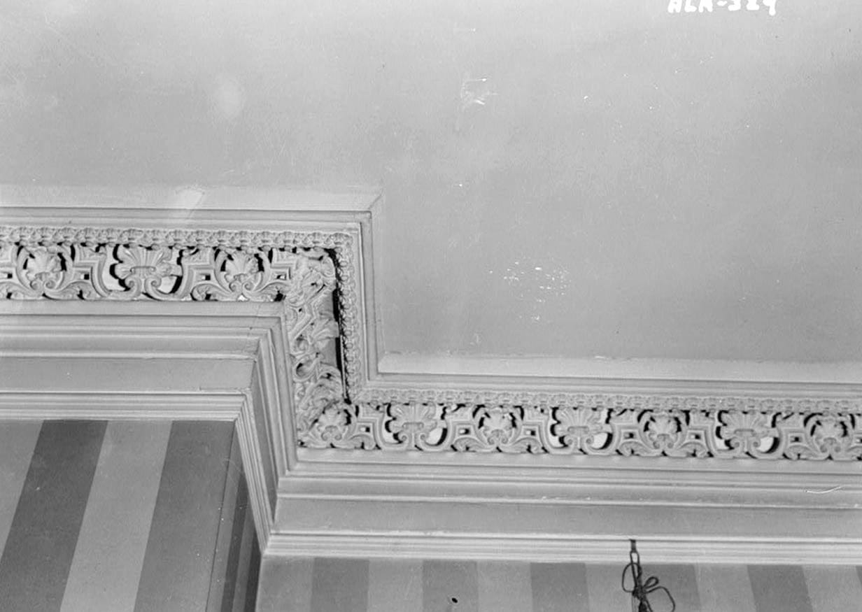 22. Historic American Buildings Survey Alex Bush, Photographer, Feb. 7, 1935 CLOSE UP OF CORNICE IN REAR PARLOR (MUSIC ROOM), N. E. ROOM - Courtview, 505 North Court Street, University of North Alabama Campus, Florence, Lauderdale County, AL