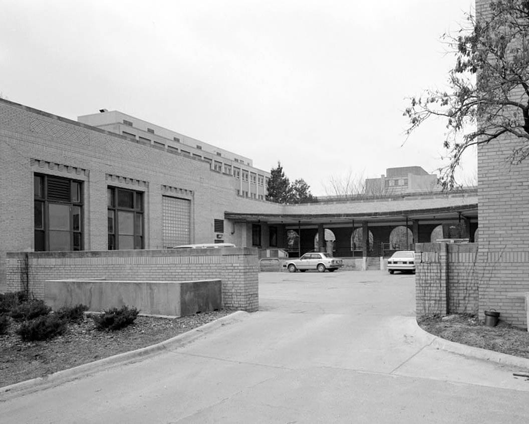 20. RECEIVING COURT AT REAR (EAST SIDE) OF BUILDING INCLUDING NORTH SIDE OF SOUTH WING, LOOKING SOUTHWEST (Harms) - Dairy Industry Building, Iowa State University campus, Ames, Story County, IA