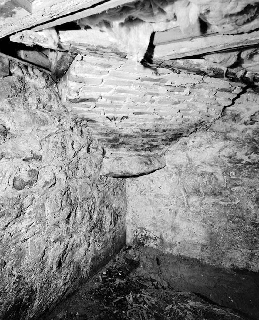 1. Basement: view of northwest corner looking northwest showing corbelling for parlor fireplace - Eakin-Zacheus House, 103 South Congress Street, Port Penn, New Castle County, DE