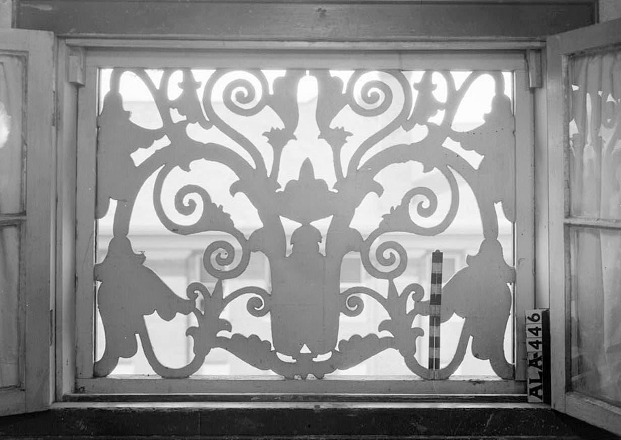 25. Historic American Buildings Survey Alex Bush, Photographer, February 2, 1937 WINDOW GRILL IN WEST WALL OF FOURTH FLOOR - East Alabama Masonic Female Institute, 205 East South Street, Talladega, Talladega County, AL