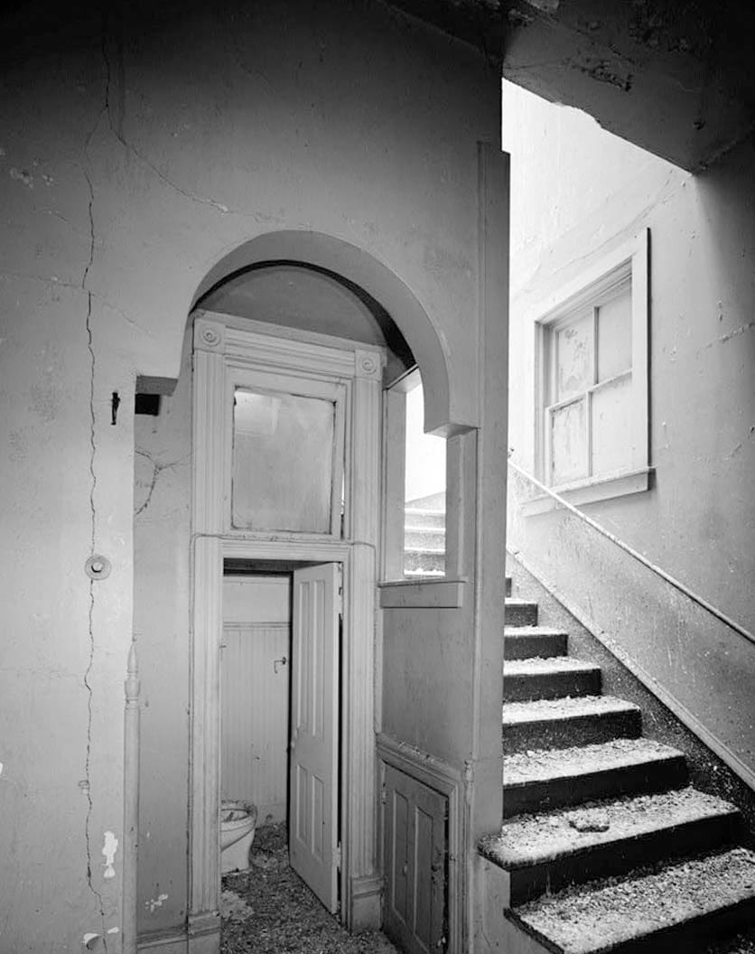 6. INTERIOR, FIRST FLOOR SHOWING STAIRWAY - East Locust Street Commercial District, Garton Bakery & Confectionery, 523 East Locust Street, Des Moines, Polk County, IA