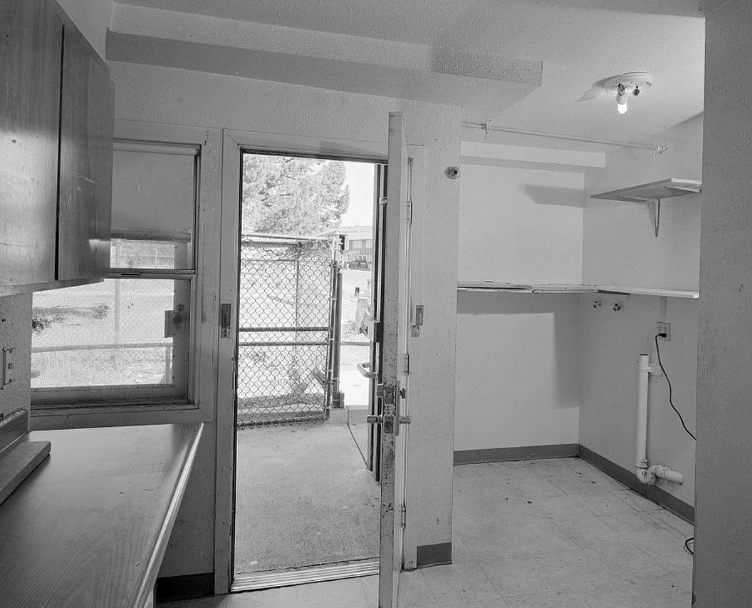 Interior view of Building No. 13 at back door, note laundry space on right, looking north - Easter Hill Village, Building No. 13, Northwest corner of Hinkley Avenue & South Twenty-Sixth Street, Richmond, Contra Costa County, CA