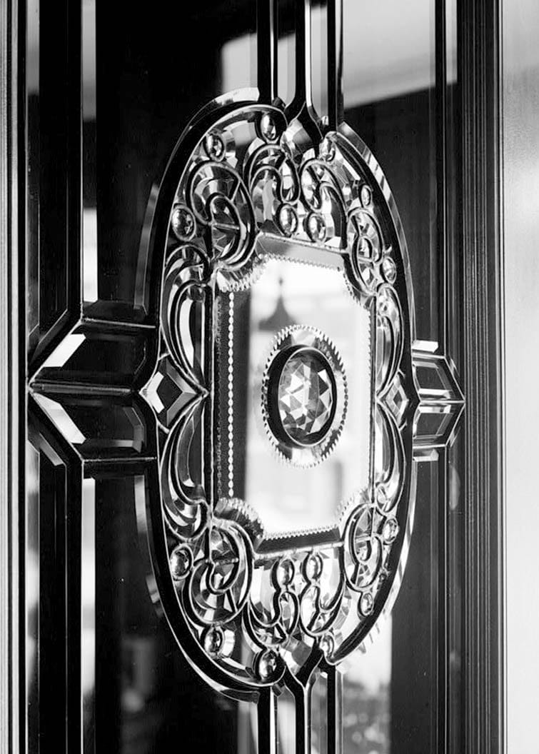 11. EAST FRONT DOOR, DETAIL OF LEADED GLASS - Fannie Stout House, 1145 Locust Street, Dubuque, Dubuque County, IA