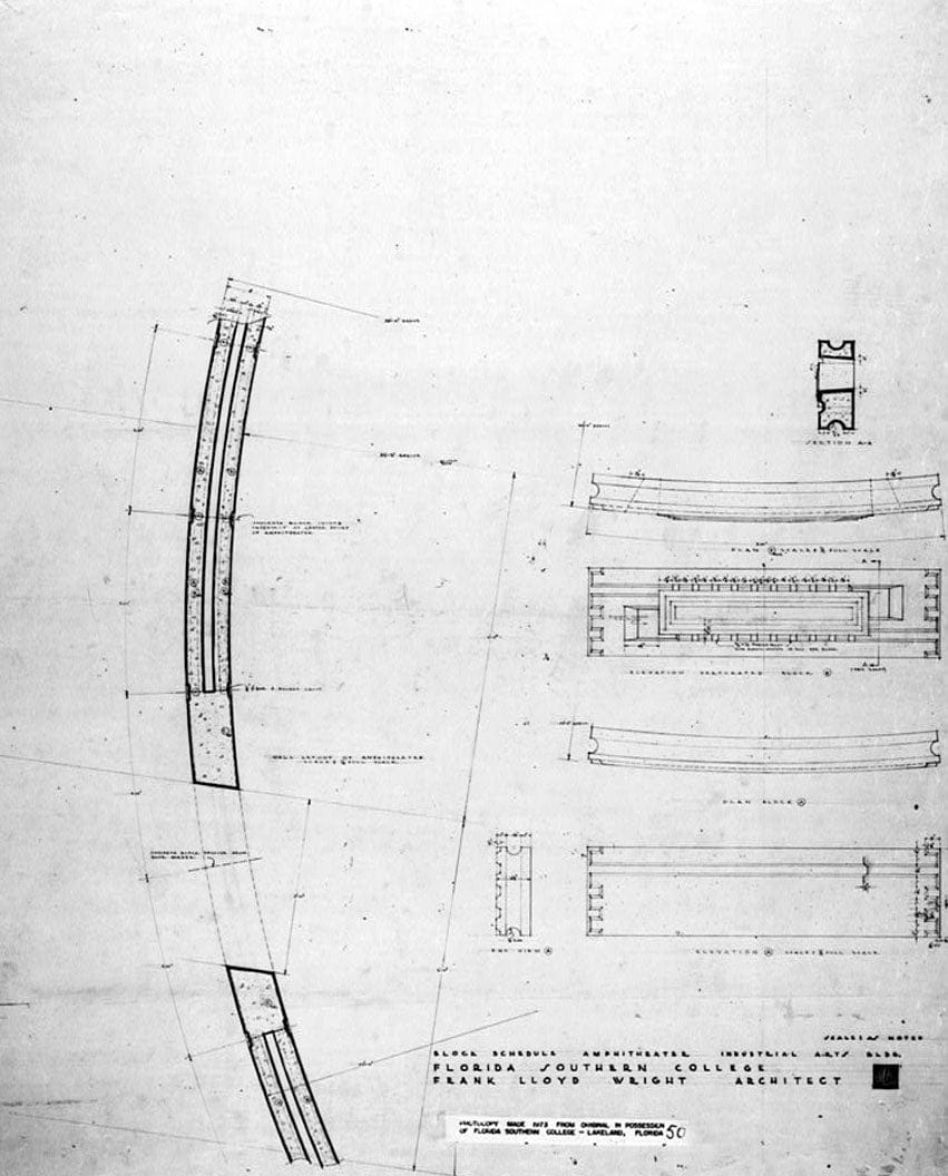 49. INDUSTRIAL ARTS BUILDING (LUCIUS POND ORDWAY BUILDING): BLOCK SCHEDULE FOR AMPHITHEATER - Florida Southern College, McDonald & Johnson Avenues, Lakeland, Polk County, FL