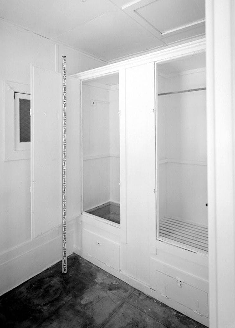 6. INTERIOR DETAILED VIEW OF SOUTH ROOM FUMIGATION CLOSETS WITH SCALE - Fumigation Hall, Moloka'i Island, Kalaupapa, Kalawao County, HI