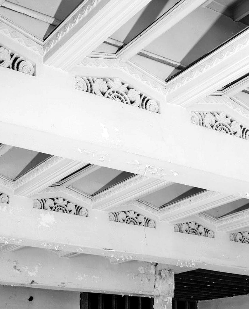INTERIOR, SECOND FLOOR DINING ROOM CEILING DETAIL VIEW, FACING NORTHEAST - Grand Central Air Terminal, 1310 Air Way, Glendale, Los Angeles County, CA