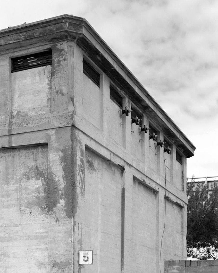 3. Dennis Hill, Photographer June 1998 DETAIL OF EAST SIDE OF KEY PIER SUBSTATION, FACING NORTHWEST. - Key Pier Substation, Foot of east end of bridge, Oakland, Alameda County, CA