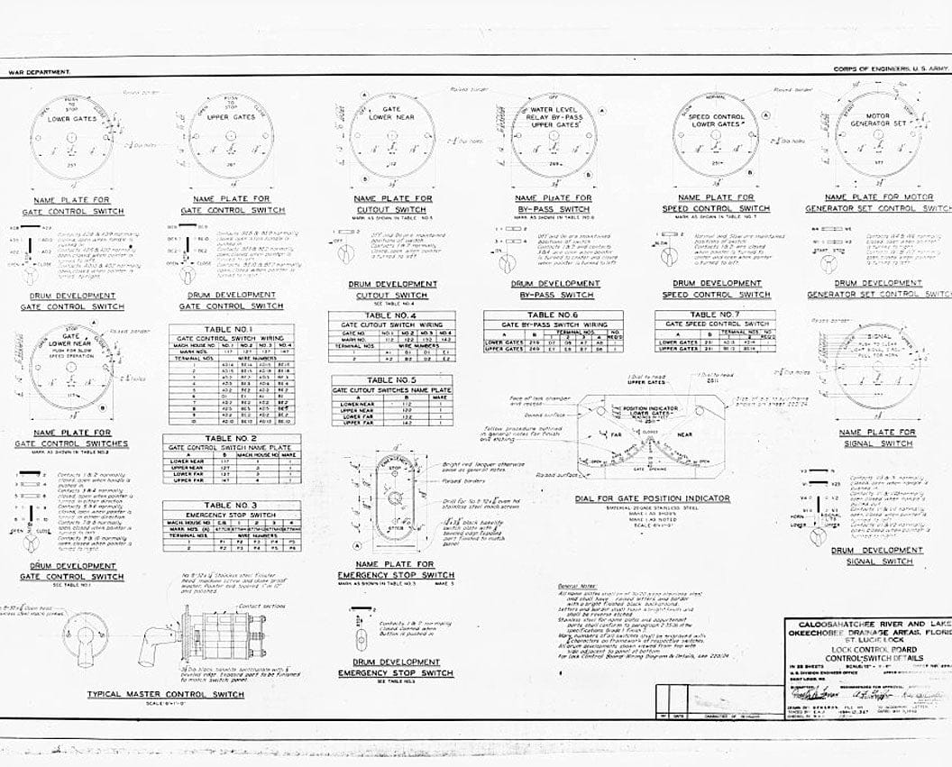 ST. LUCIE LOCK, LOCK CONTROL BOARD, CONTROL SWITCH DETAILS - St. Lucie Canal, Lock No. 1, Control Station, St. Lucie, Cross State Canal, Okeechobee Intracoastal Waterway, Stuart, Martin County, FL