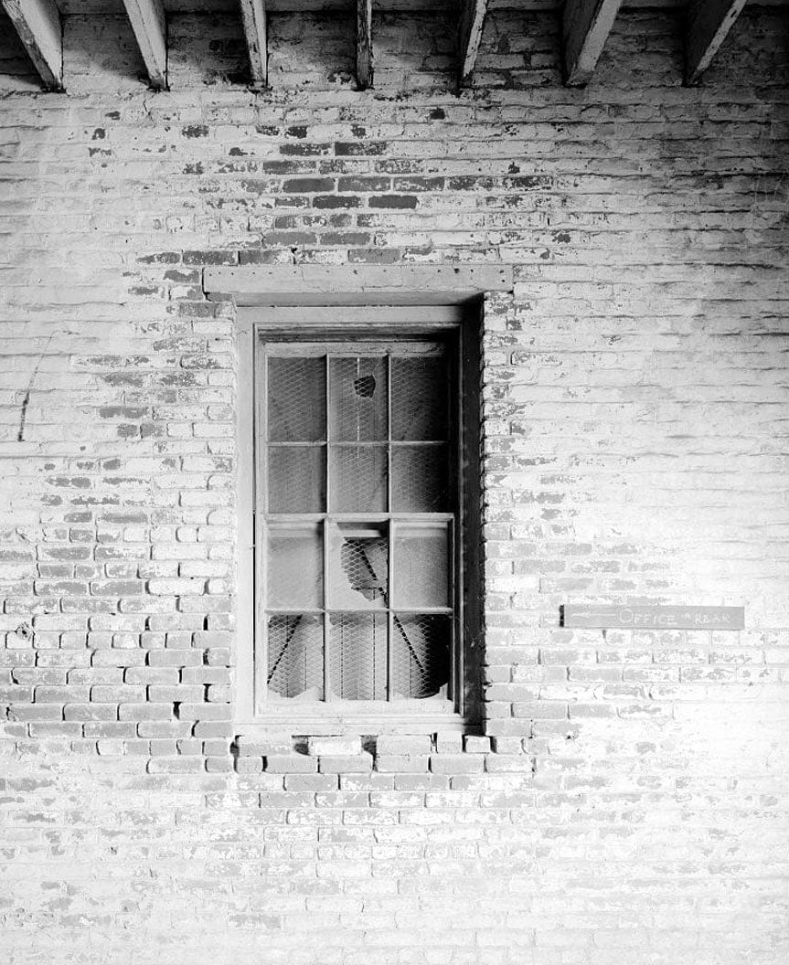 Interior detail of first floor window. North corner; camera facing west. - Mare Island Naval Shipyard, Stables, Cedar Avenue, east side Cedar Avenue, north of Fourteenth Street, Vallejo, Solano County, CA