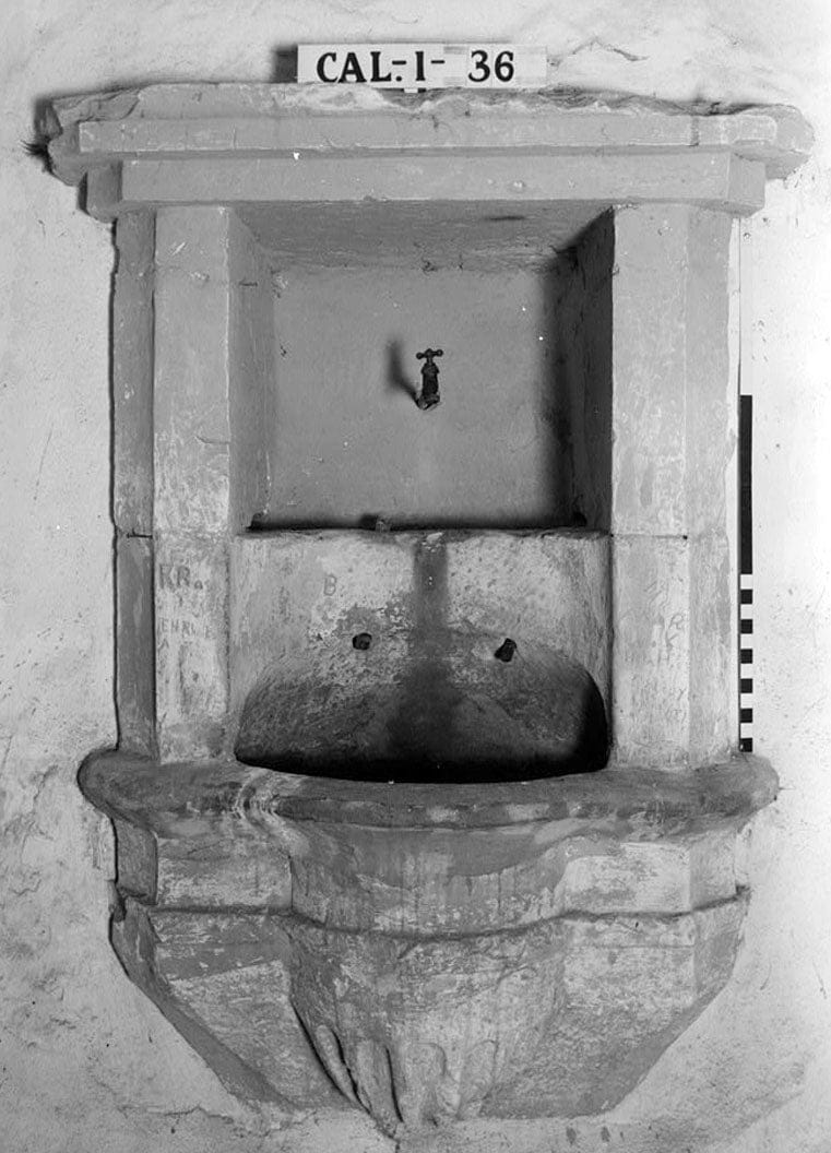 31. Historic American Buildings Survey Robert W. Kerrigan - Photographer Photo Taken: May 14, 1936 DETAIL OF FONT (Original) - Mission San Carlos Borromeo, Rio Road & Lausen Drive, Carmel-by-the-Sea, Monterey County, CA