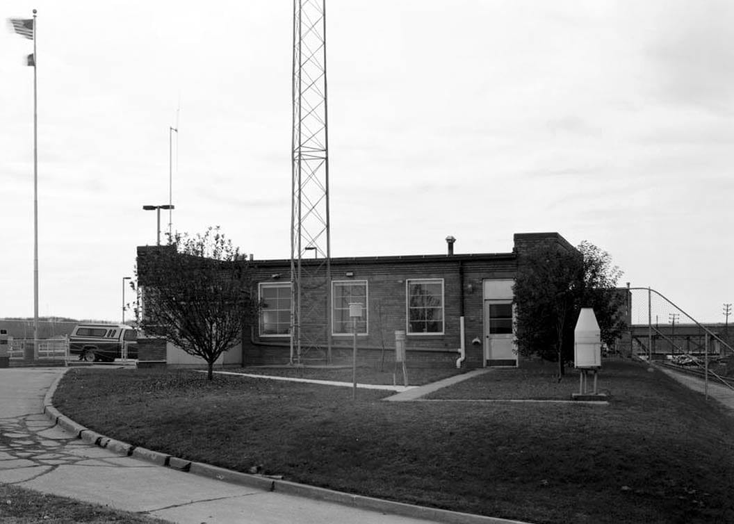 49. VIEW OF LOCK TENDER'S OFFICE AND SHOP, NORTH SIDE, 1957 LOCK - Mississippi River 9-Foot Channel, Lock & Dam No. 19, Upper Mississippi River, Keokuk, Lee County, IA
