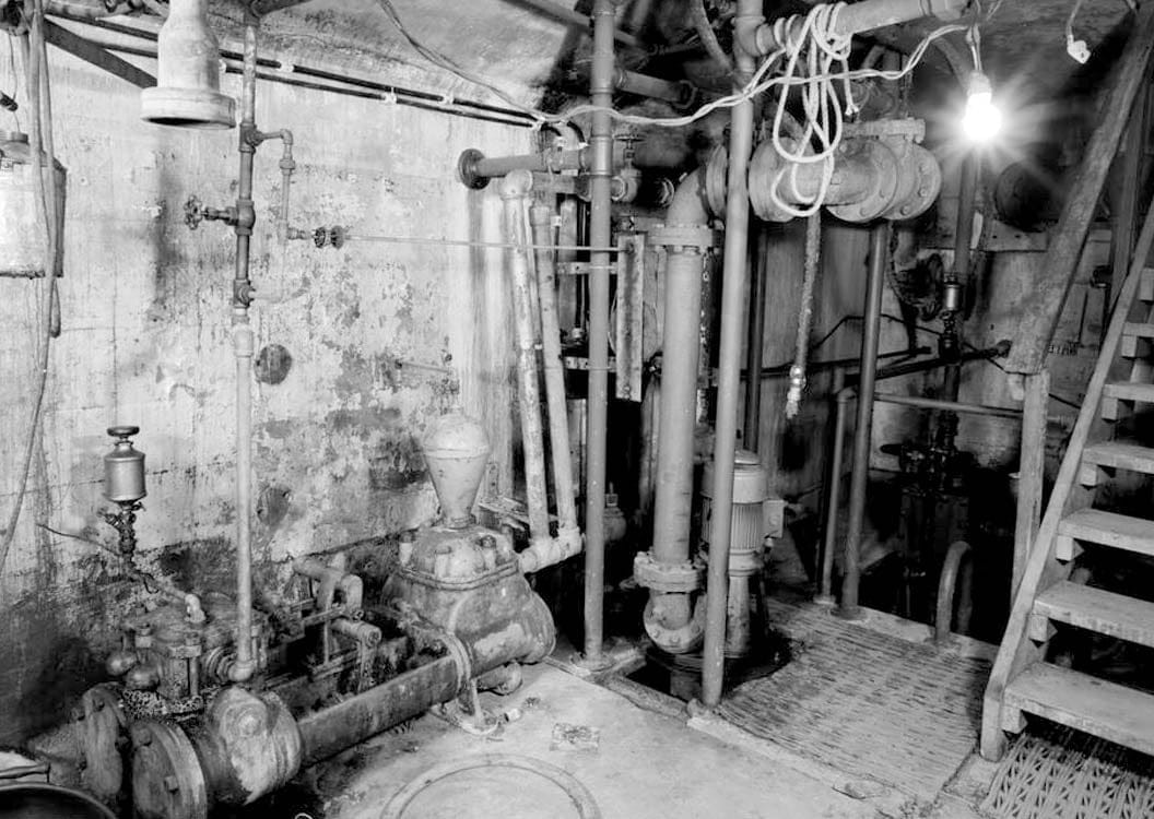 24. DETAIL VIEW OF AIR-OPERATED PUMP, LOWER TUNNELS, OLD KEOKUK LOCK - Mississippi River 9-Foot Channel, Lock & Dam No. 19, Upper Mississippi River, Keokuk, Lee County, IA