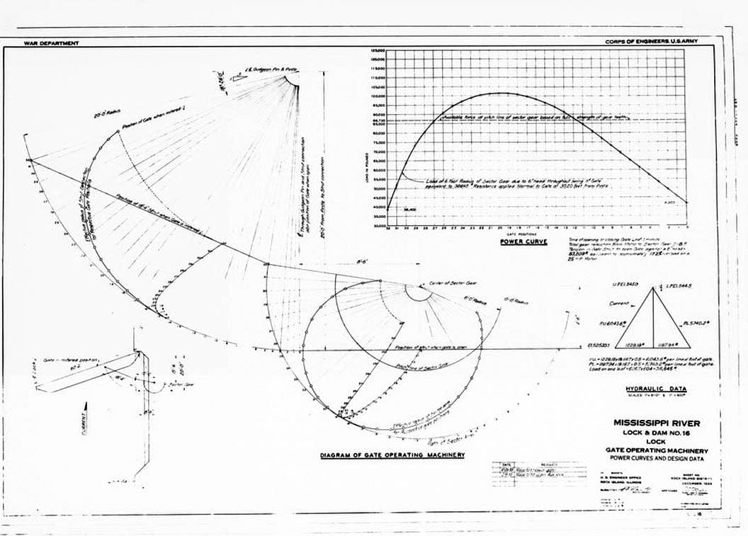 13. LOCK GATE OPERATING MACHINERY. December 1933 - Mississippi River 9-Foot Channel Project, Lock & Dam No. 16, Upper Mississippi River, Muscatine, Muscatine County, IA