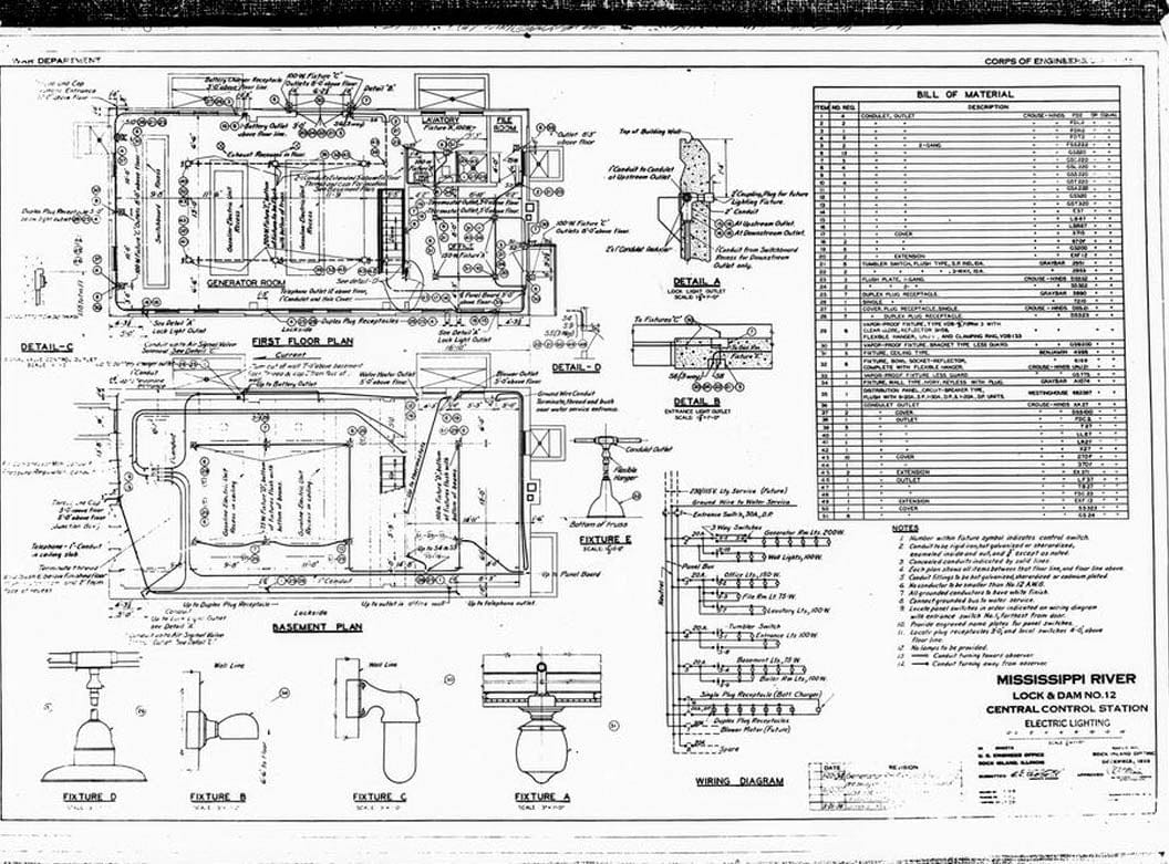 23. CENTRAL CONTROL STATION, ELECTRICAL LIGHTING. December 1933 - Mississippi River 9-Foot Channel Project, Lock & Dam No. 12, Upper Mississippi River, Bellevue, Jackson County, IA