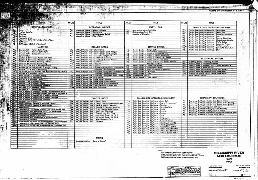 11. DAM INDEX. September 1936 - Mississippi River 9-Foot Channel Project, Lock & Dam No. 12, Upper Mississippi River, Bellevue, Jackson County, IA