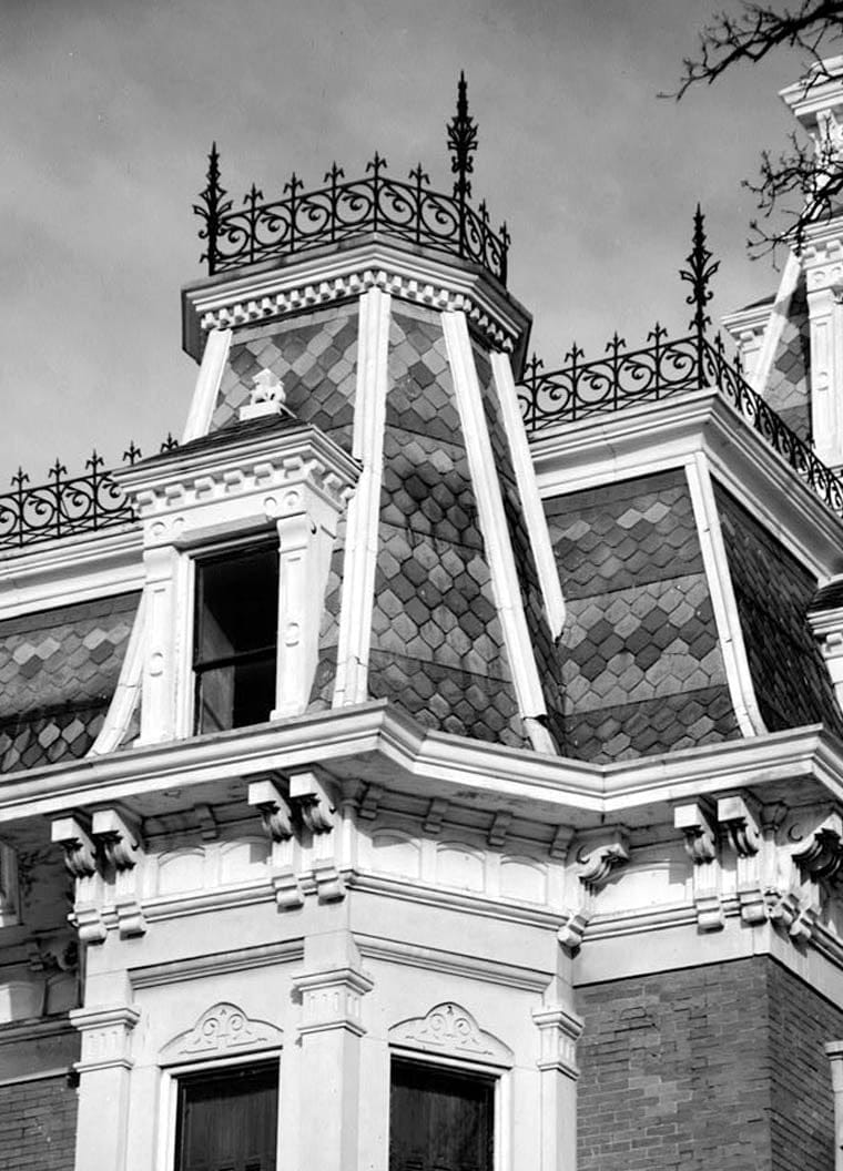 8. DETAIL OF ROOF AT SOUTHEAST CORNER, SHOWING CRESTING - J. Monroe Parker House, Main & Twelfth Streets, Davenport, Scott County, IA