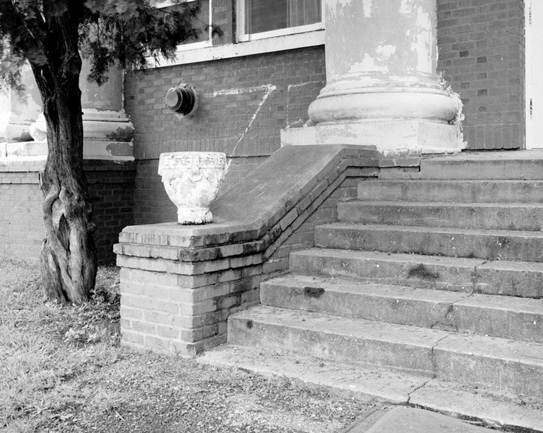 4. SOUTH FRONT OF MAIN BLOCK, DETAIL OF STEPS AND COLUMN BASE - Plains School, Bond Street (opposite Paschal Street), Plains, Sumter County, GA