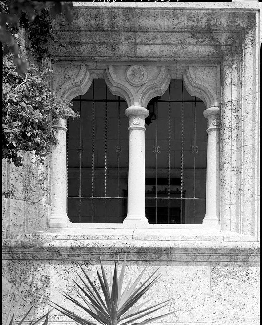 Detail of window with Venetian motif in South side of entrance foyer (South elevation), view looking north - U.S. Post Office & Courthouse, 300 Northeast First Avenue, Miami, Miami-Dade County, FL