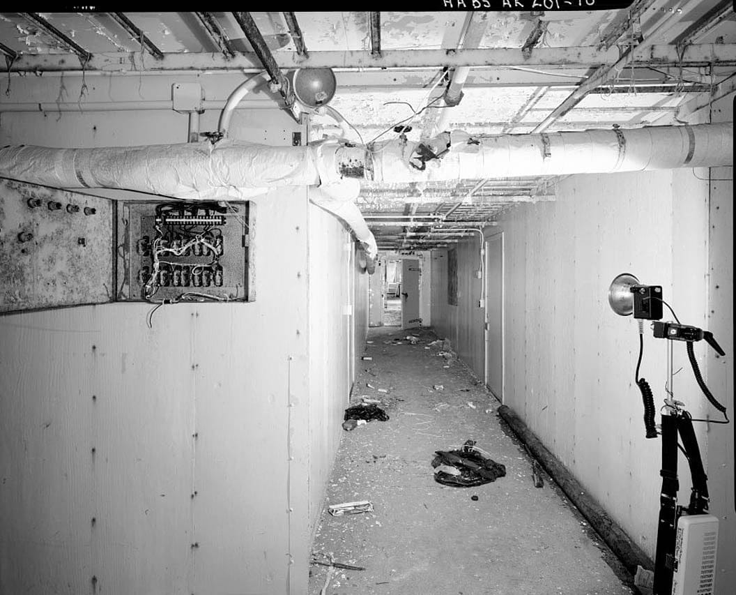 Corridor intersection, between Buildings 4 and 5, looking east toward Building 5 - POW-3 Distant Early Warning Line Station, Bullen Point, Prudhoe Bay, North Slope Borough, AK