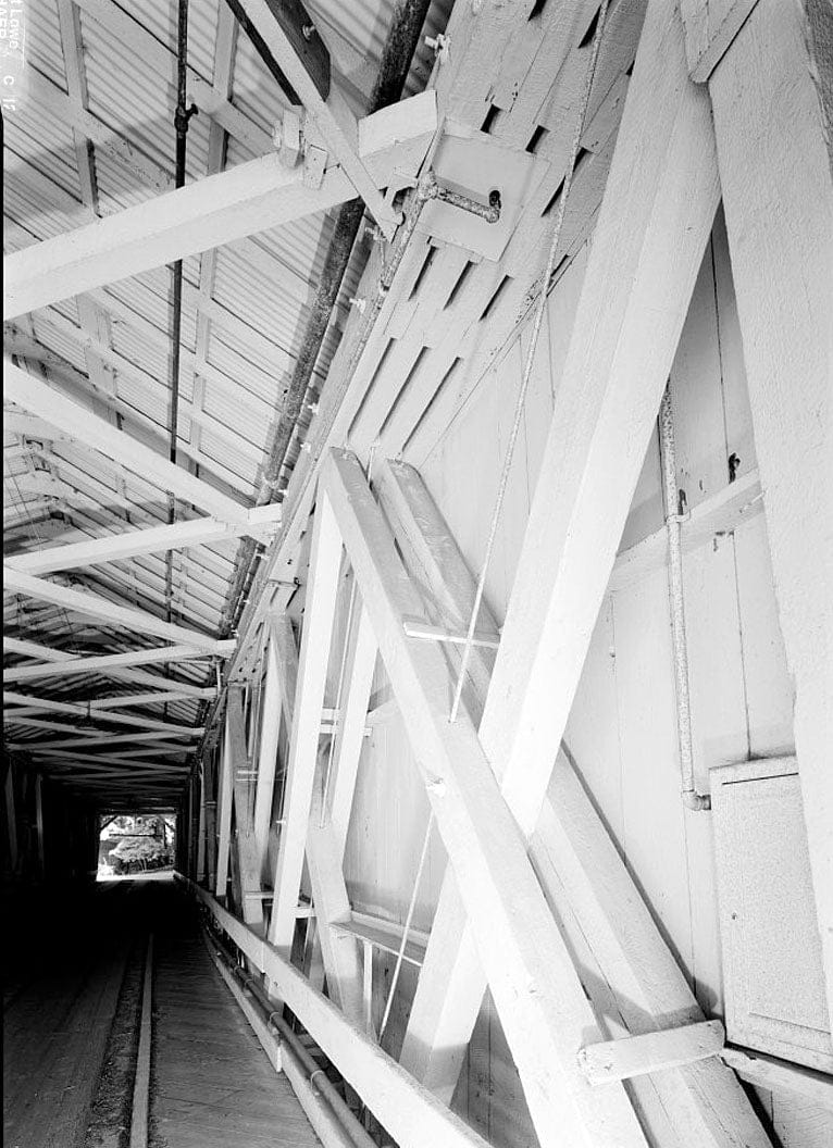 FRAMING DETAIL, RIGHT PANEL LOOKING WEST - Powder Works Bridge, Spanning San Lorenzo River, Keystone Way, Paradise Park, Santa Cruz, Santa Cruz County, CA