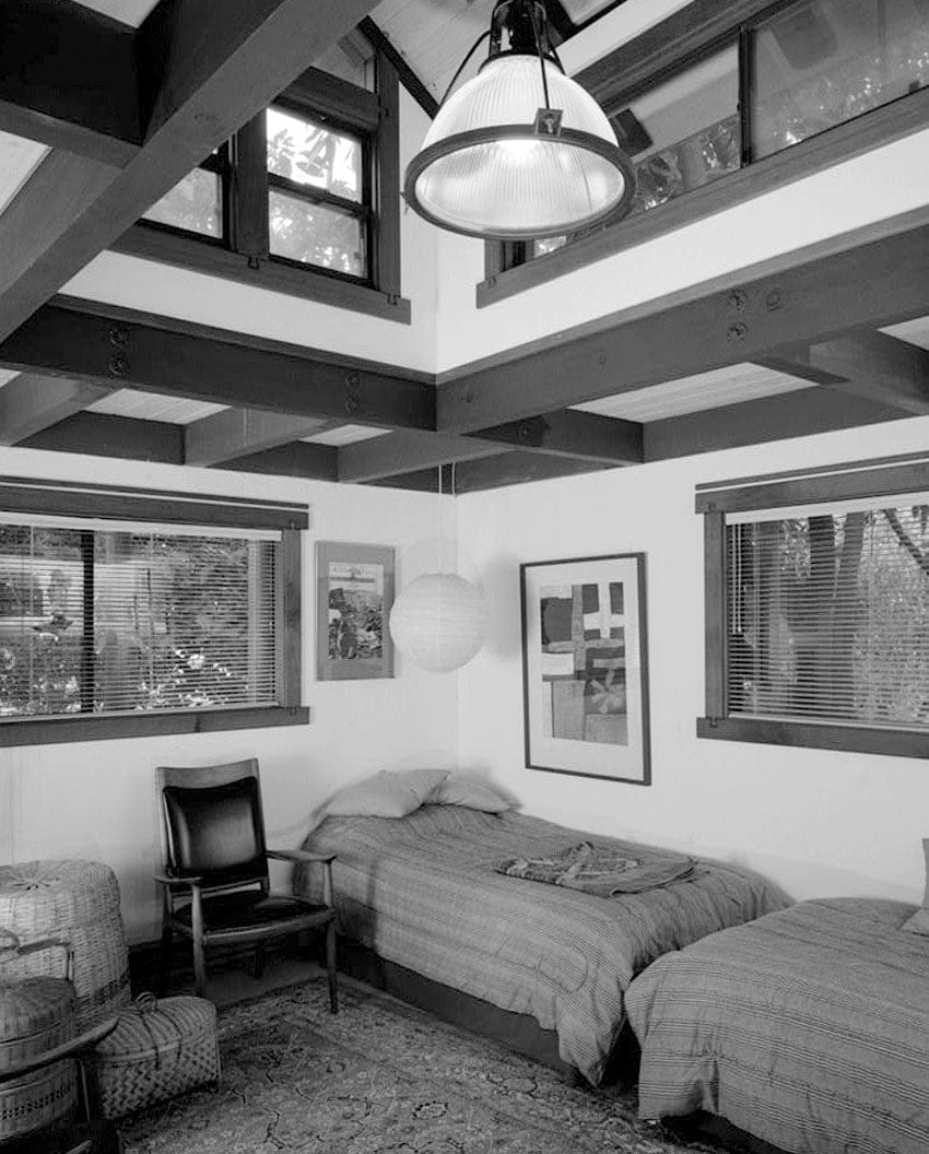 Interior main residence guest bedroom view, facing southeast. - Sam & Alfreda Maloof Compound, Main Residence & Workshop, 9553 Highland Avenue, Rancho Cucamonga, San Bernardino County, CA