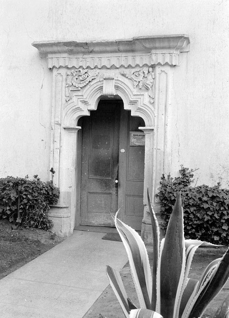 8. Historic American Buildings Survey Roger Sturtevant, Photographer Feb. 14, 1934 WEST TRANSEPT (ENTRANCE) - San Carlos Presidio Church, 550 Church Street, Monterey, Monterey County, CA